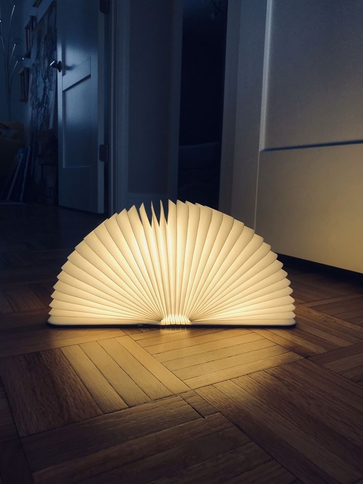 Your Book Lamp, a USB charging cable, and our “Magic Book” guide with instructions and ideas for use.