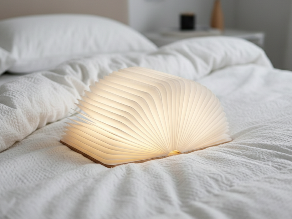 When you open it, the pages light up automatically. Close it, and the light turns off. It’s completely wireless and rechargeable, giving you full freedom to place it anywhere.